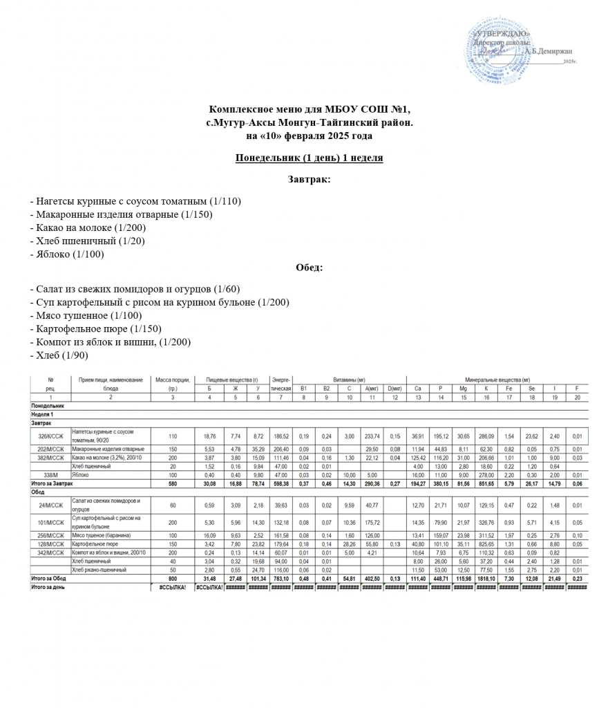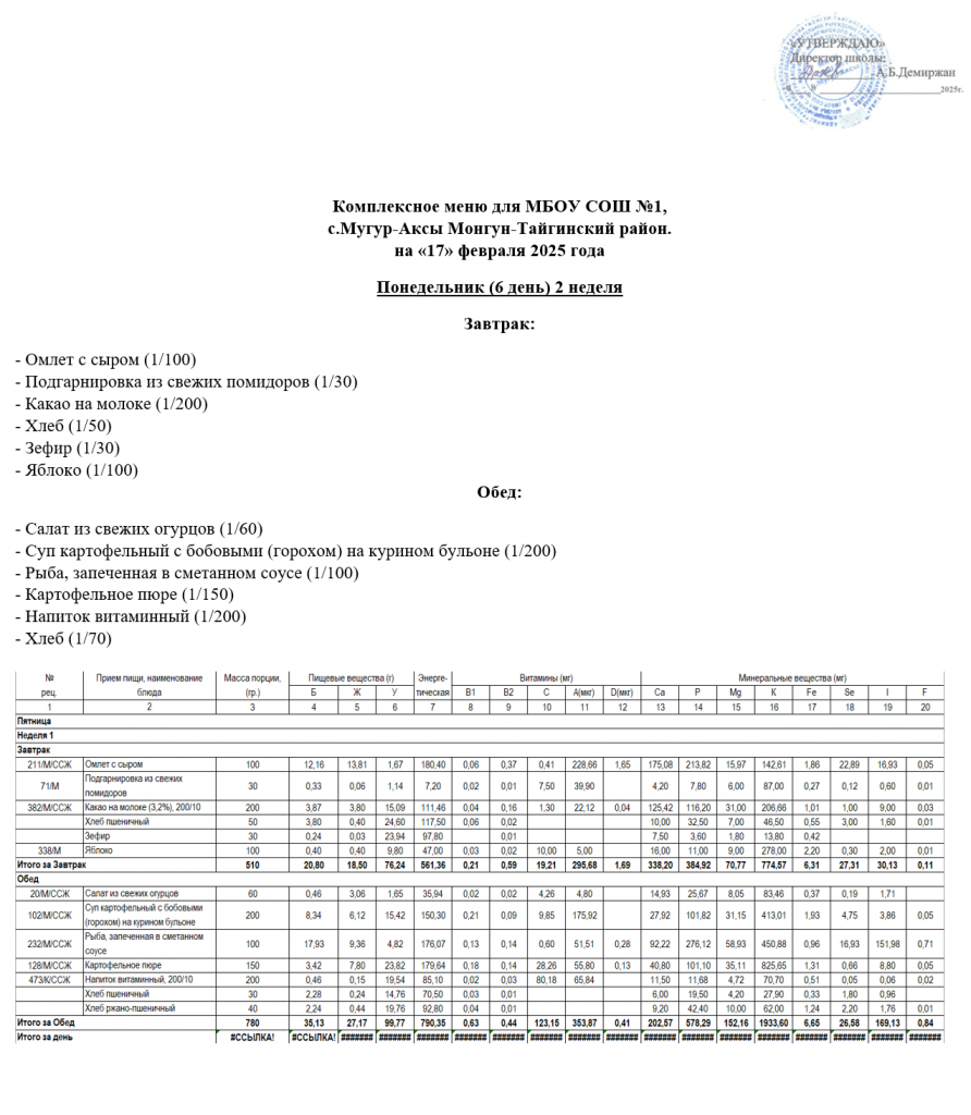 МЕНЮ 26.02.2025