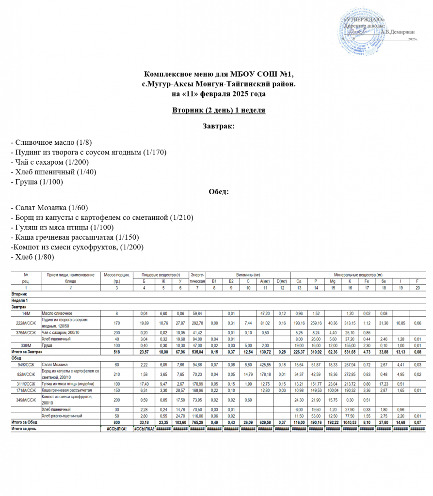 МЕНЮ 11.02.2025