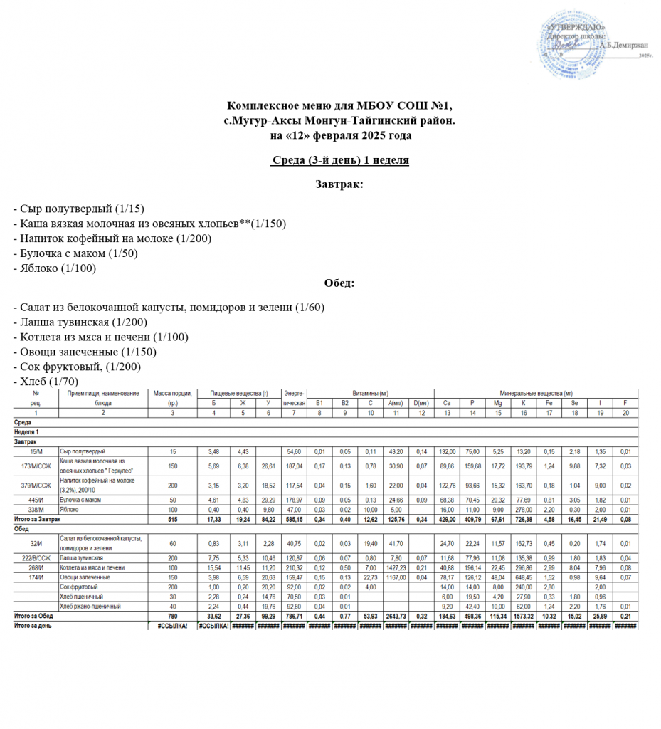МЕНЮ 12.02.2025
