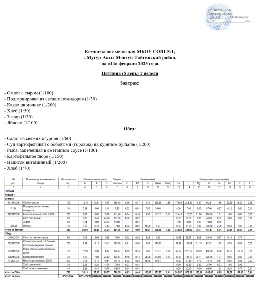 МЕНЮ 25.02.2025