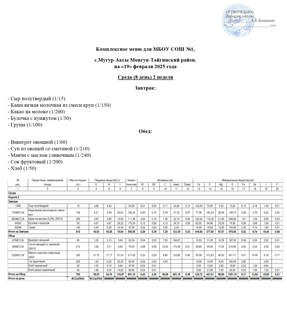 МЕНЮ 19.02.2025
