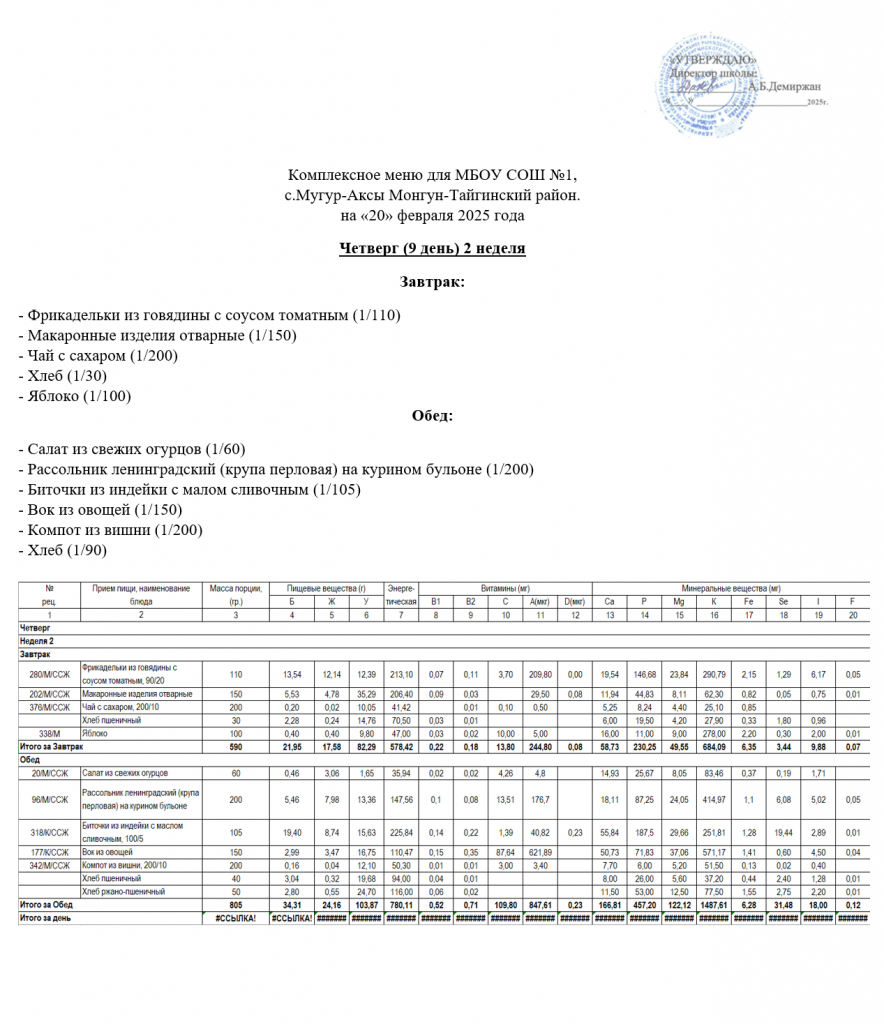 МЕНЮ 20.02.2025