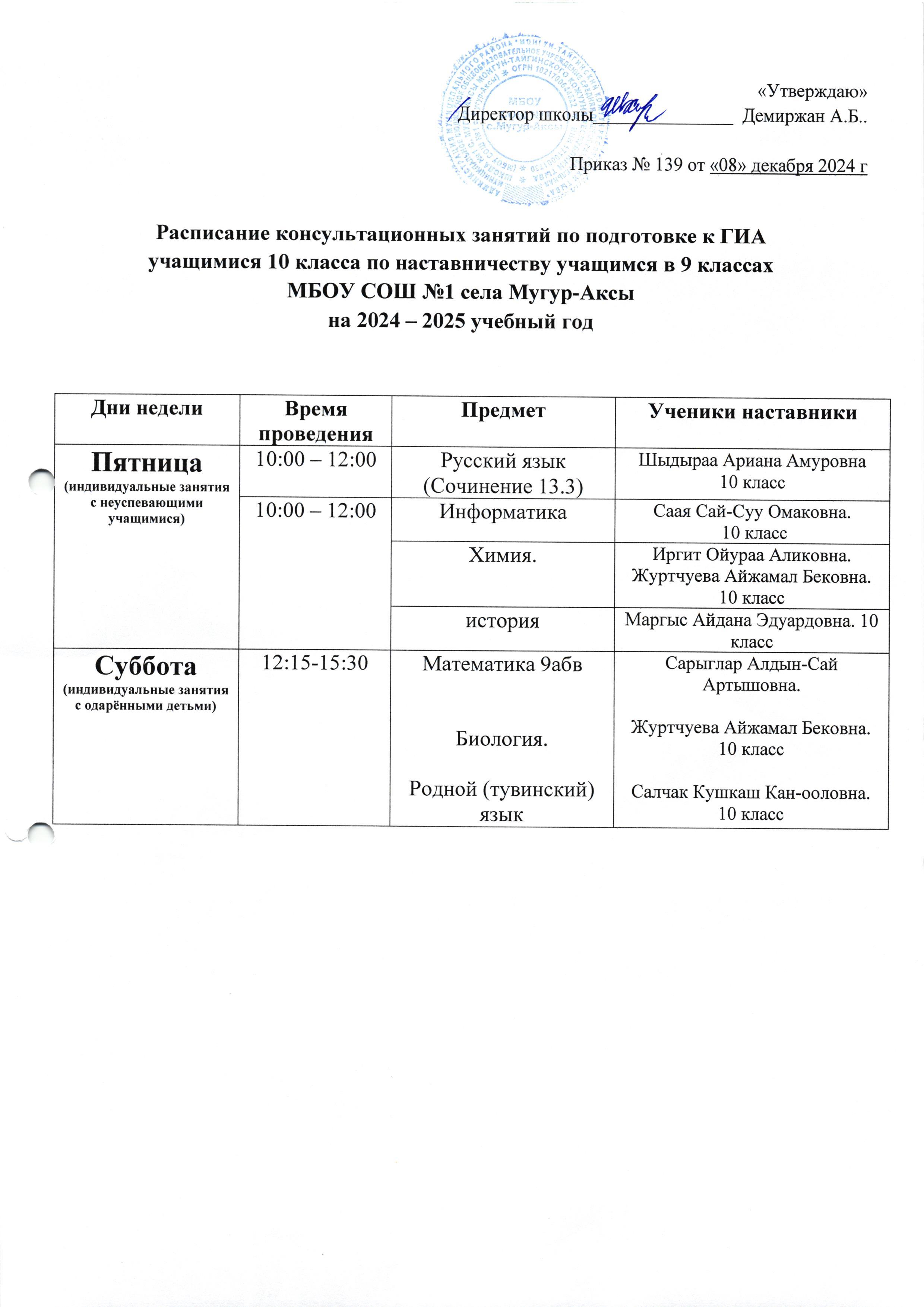 Расписание консультационных занятий по подготовке к ГИА учащимися 10 класса по наставничеству на 2024-2025 уч. годСкачать