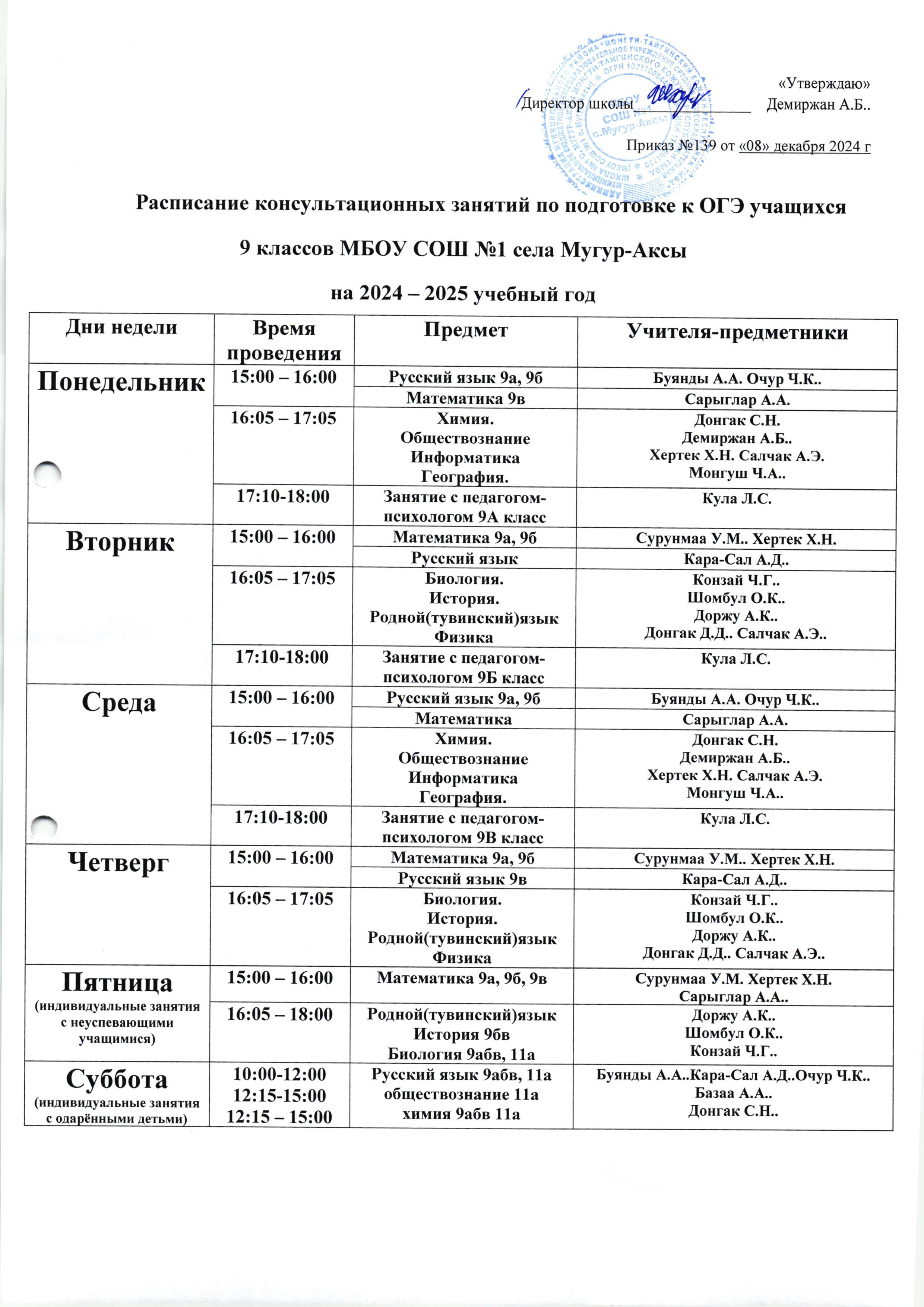 Расписание консультационных занятий по подготовке к ОГЭ учащихся 9 классов на 2024-2025 уч. годСкачать